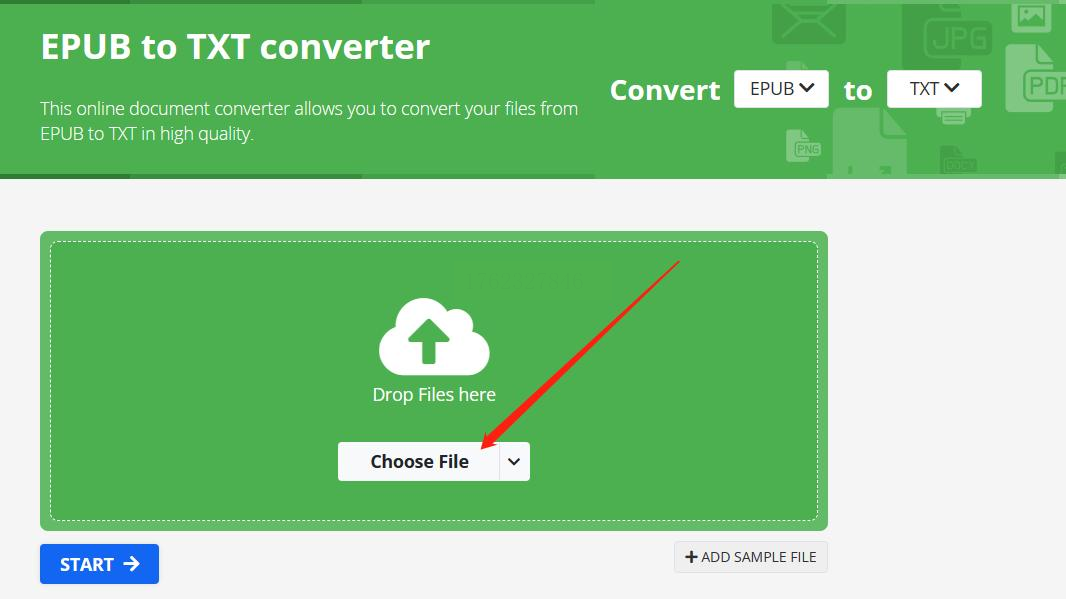 点击“Choose File”按钮,选择要转换的EPUB文件。
