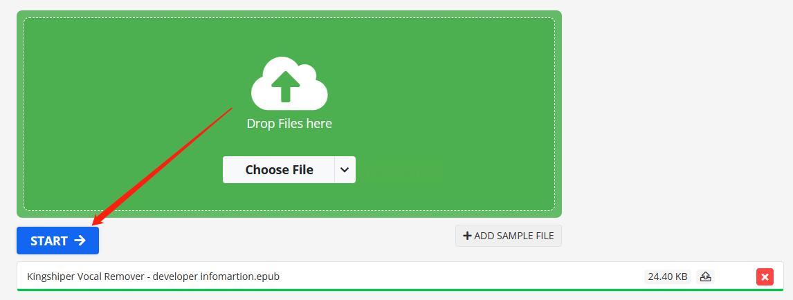 点击“选择文件”按钮,从电脑中选择要转换的EPUB文件,网站会自动处理上传。