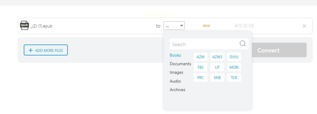 打开OnlineConvertFree官网,在页面上找到“书籍转换器”选项,点击进入转换界面。