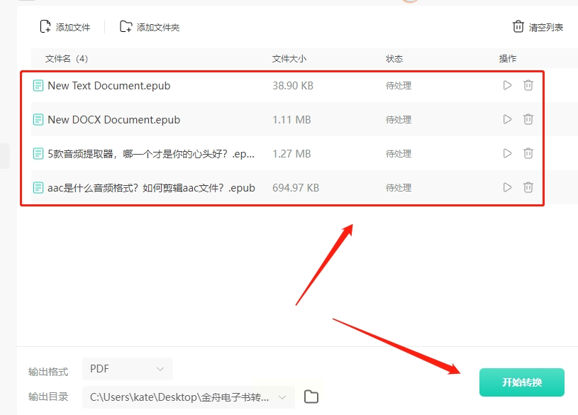 3. 添加EPUB文件:点“添加文件”,一个一个选文件;或者点“添加文件夹”,直接把整个文件夹的EPUB文件都导入(超方便!)。