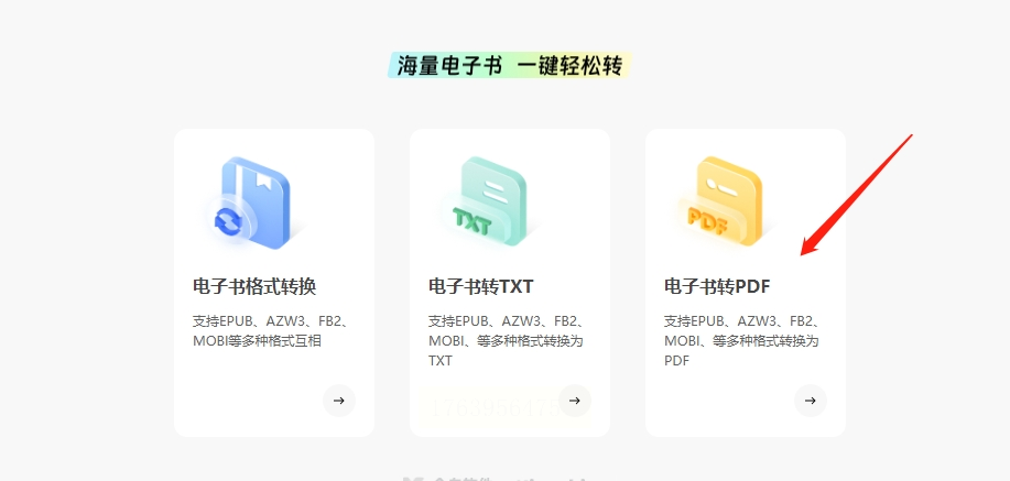 2. 选择转换类型:在软件主界面里,找到“电子书转PDF”这个选项,点进去。