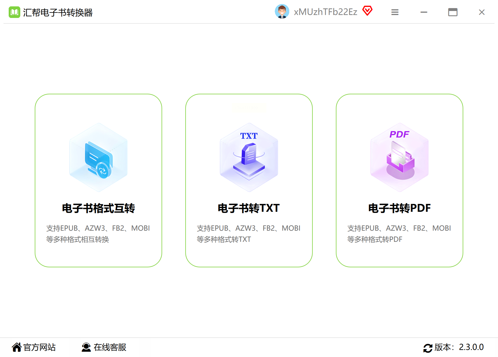 - 步骤一:启动应用程序后,在功能导航区选择“格式转换”模块,进入电子书专用转换界面。