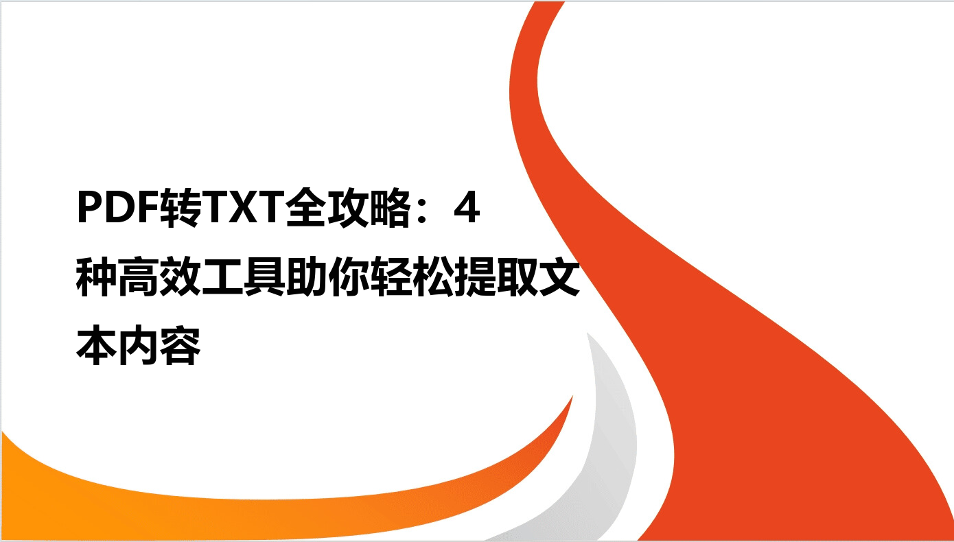 在数字化的今天,PDF和TXT格式在我们的工作与学习中扮演着重要角色。PDF文件因其格式稳定、内容保护好而被广泛使用,而TXT作为纯文本格式,在编辑、搜索和数据处理方面更具灵活性。当需要提取PDF中的文本内容时,选择合适的转换工具和方法就显得尤为重要。本文将详细介绍几种高效的PDF转TXT方法,帮助你快速完成格式转换。