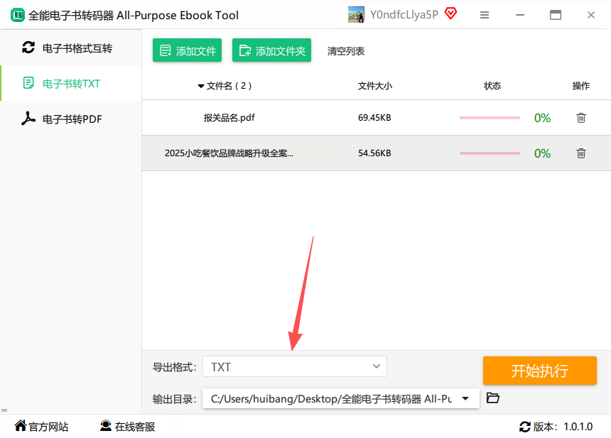 2. 上传文件:在左侧功能栏选择"电子书转TXT"操作,右侧会出现文件上传区域,你可以直接将PDF文件拖拽进来,也能通过点击上传按钮选择文件。支持批量上传多个文件,提高效率。