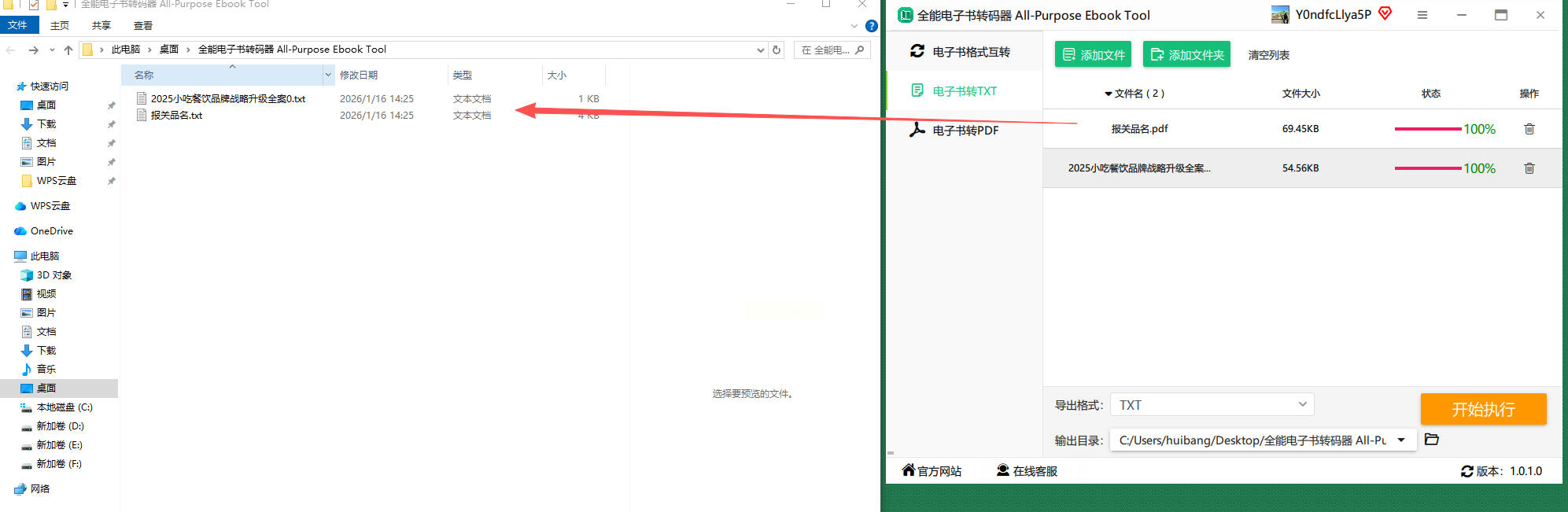 4. 开始转换:点击"开始转换"按钮,等待进度条完成。转换结束后,在指定目录中找到生成的TXT文件。