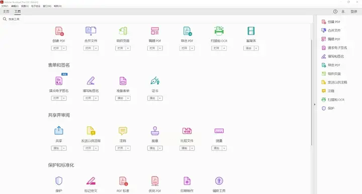 步骤一:打开Adobe Acrobat Pro DC,点击左侧工具栏的"工具",在弹出的工具列表中选择"创建PDF";