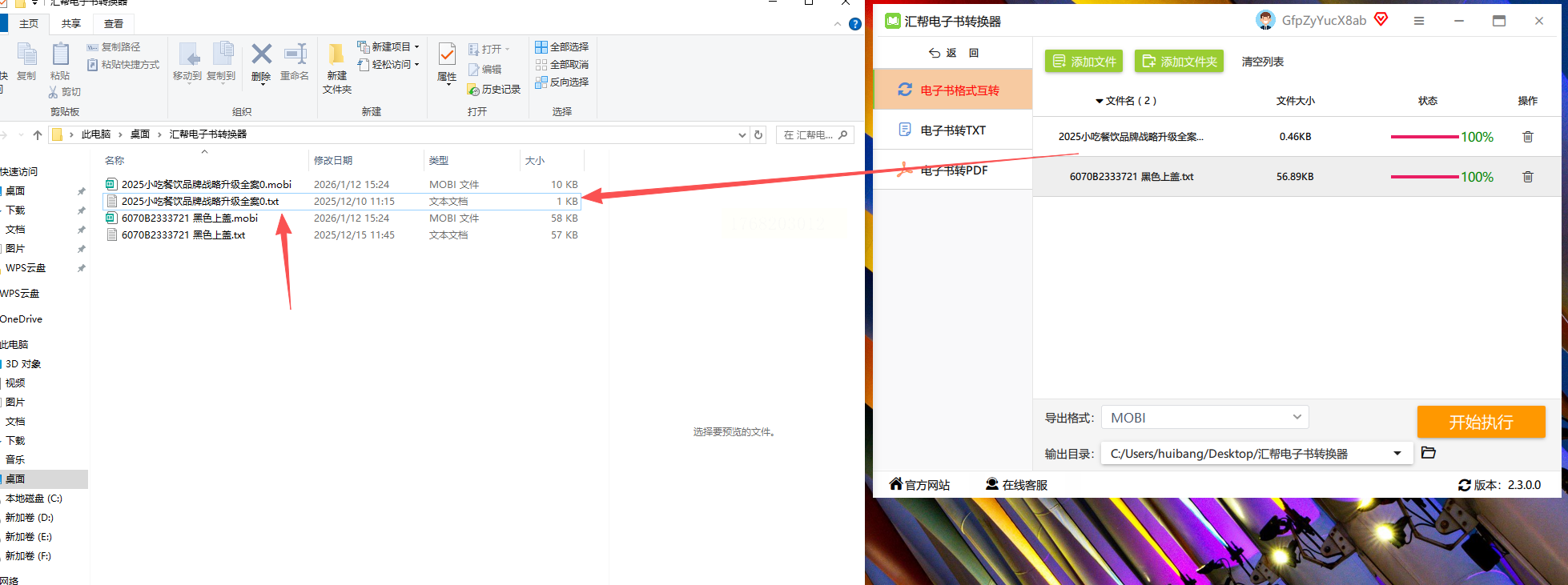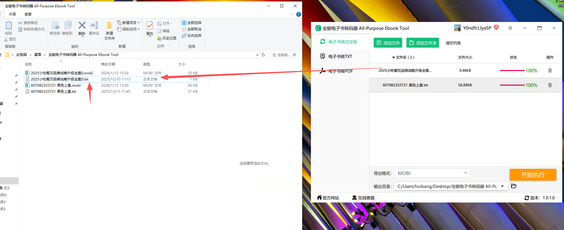 步骤五:转换结束后,新的MOBI文件就生成了,原文件同样会有备份。