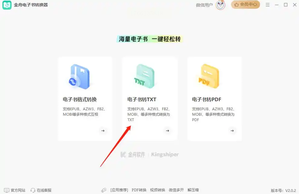 1. 打开软件后,在功能列表中选择“电子书转TXT”(界面设计清晰,功能分区明确)。