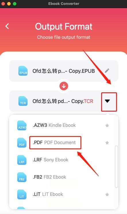 3. 选择PDF格式:软件会自动解析文件,显示“转换后格式”选项,点击右侧下拉箭头,选择“PDF”。
