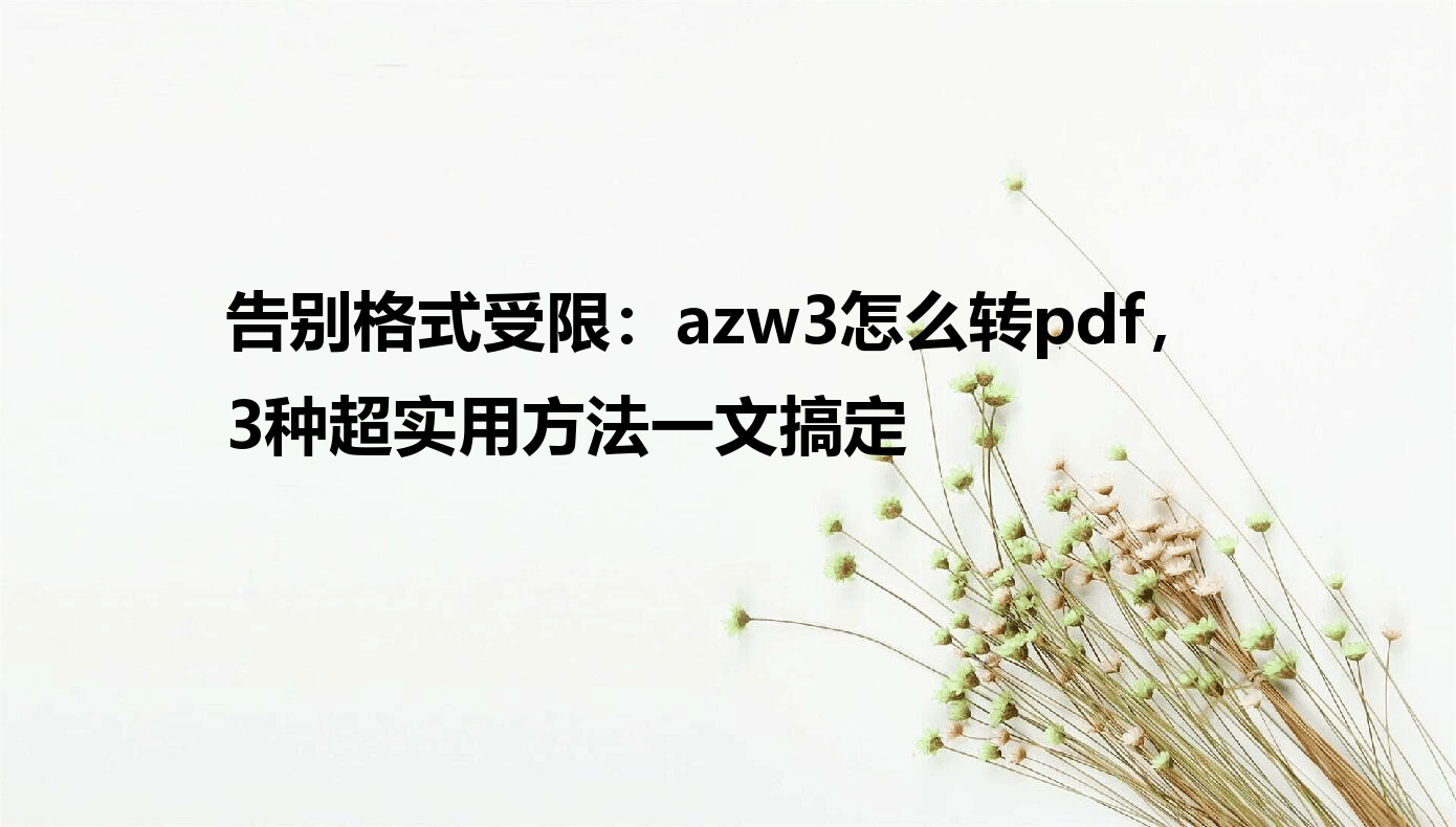 在数字阅读日益普及的今天,电子书格式的兼容性问题成为许多用户的痛点。AZW3作为亚马逊电子书平台的专有格式,虽能在Kindle设备上流畅阅读,但在其他设备或软件中却常常受限。将AZW3格式转换为PDF格式,既能保持内容完整性,又能获得跨平台的广泛兼容性,成为解决这一问题的关键。本文将详细介绍3款专业电子书转换工具的使用方法,帮助用户轻松实现格式转换,提升阅读体验。