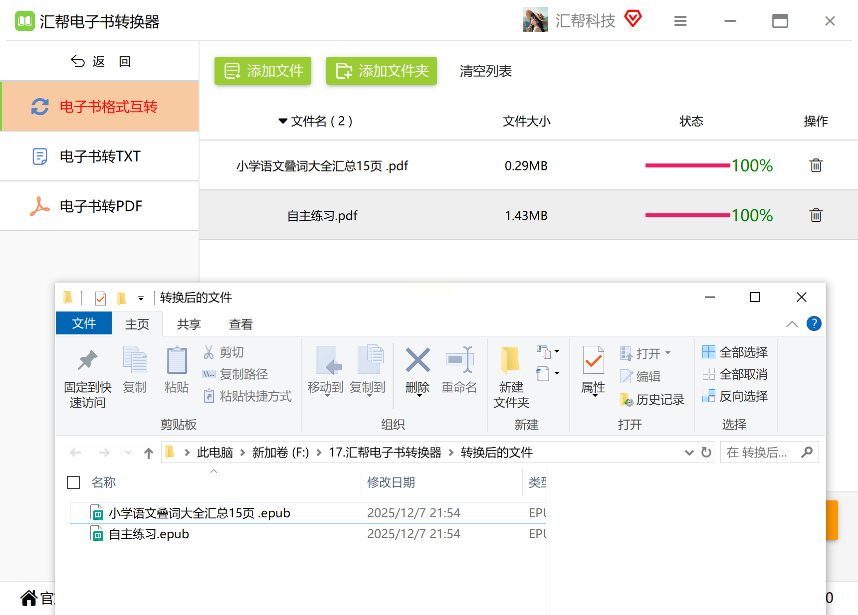 第一招:用“汇帮电子书转换器”批量把PDF转成Epub