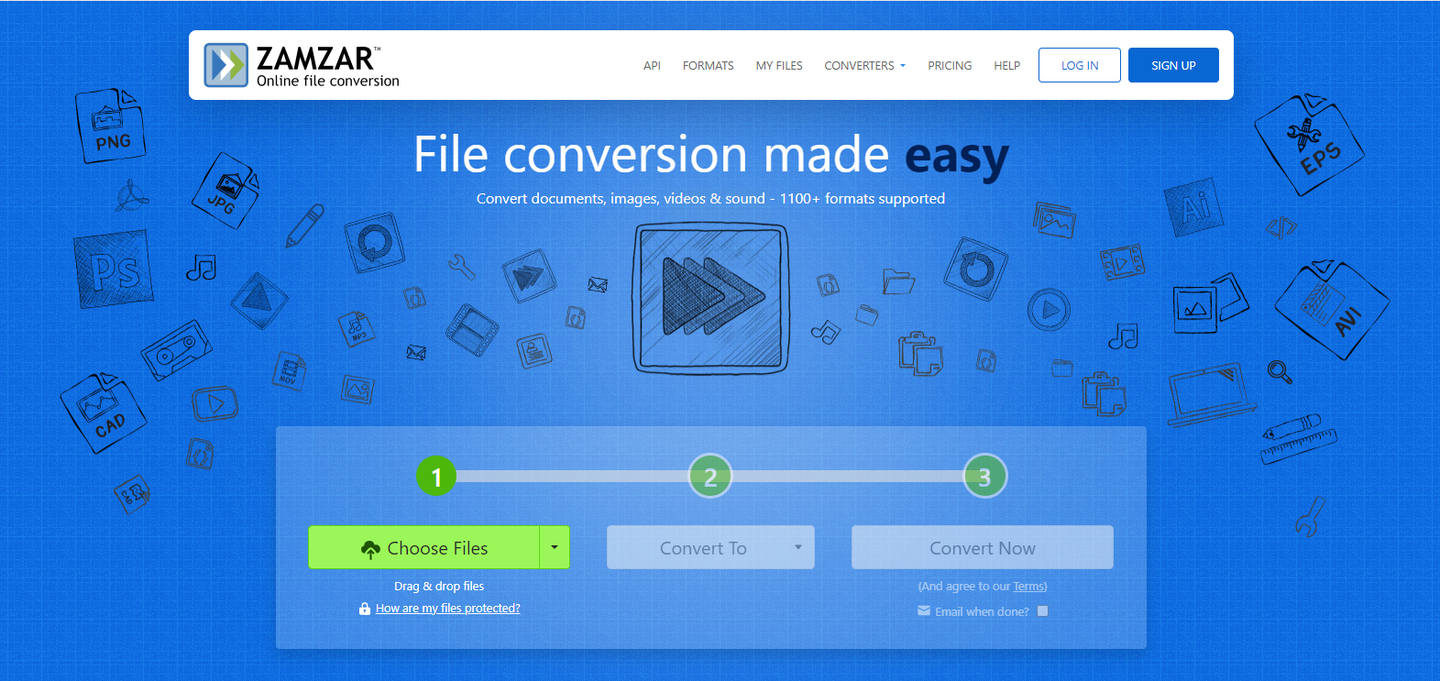 zamzar是另一个干净利落的在线文件转换服务,它转换视频、音频、文档、图像等速度很快,而且界面清爽,没什么广告干扰。
