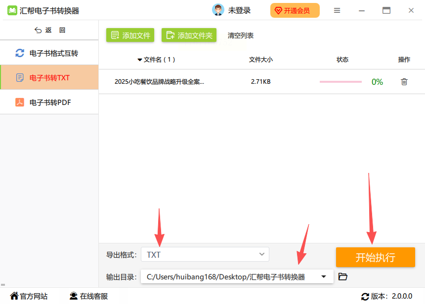 步骤三:上传文件后,软件会自动将输出格式设置为TXT。你需要在下方设置一个文件夹,用来保存转换后的TXT文件。