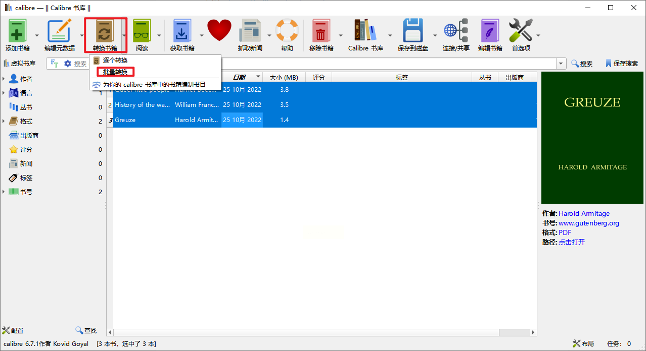 1. 打开Calibre,拖入PDF文件(支持多选)