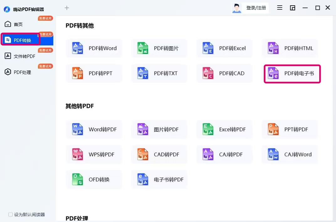 在主界面中,你会看到"电子书格式互转"这个选项,点击进入。这里整合了多种格式转换功能,专门针对PDF、EPUB等常见电子书格式设计。