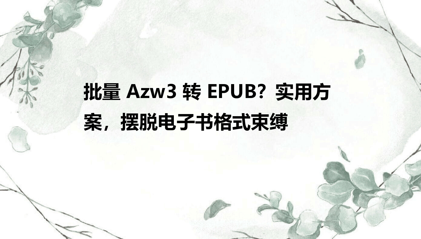 很多电子书爱好者都遇到过格式不兼容的烦恼,尤其是Kindle上的azw3格式,在手机或普通阅读器上打不开的情况太常见了。别着急,今天我就来分享几个亲测靠谱的方法,操作简单到连小白都能秒上手。