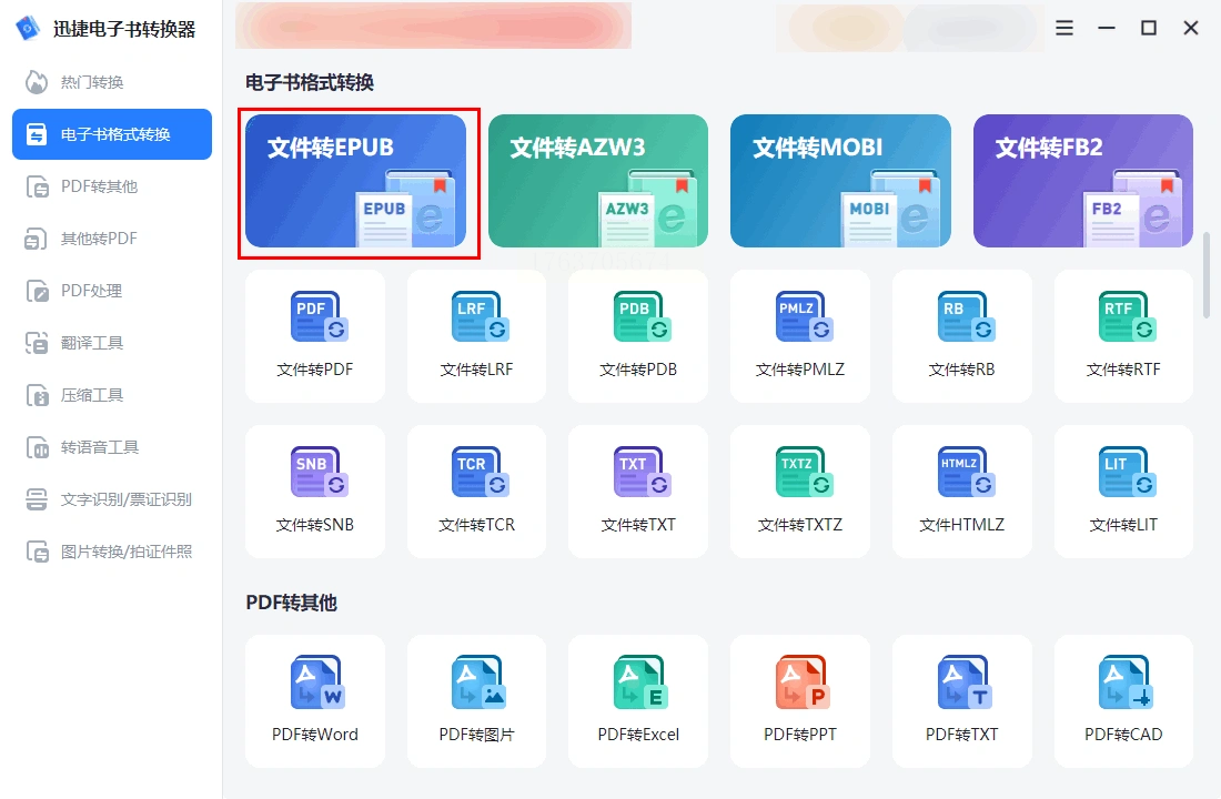 打开汇帮电子书转换器后,首页就能看到“电子书格式互转”这个选项,点进去就对了。这里除了azw3转epub,还能转换mobi、pdf等十几种格式,简直是电子书爱好者的百宝箱。