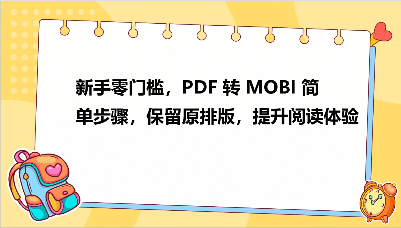 在数字阅读时代,PDF格式因版面固定、屏幕适配性差等问题,常常让我们在手机或阅读器上阅读时感到不便。MOBI格式作为亚马逊电子书的核心格式,具有文字可编辑、屏幕自适应等优势,能大幅提升阅读体验。将PDF转为MOBI,不仅能解决阅读适配问题,还能保留文档原有的排版风格。本文将详细介绍3种PDF转MOBI的实用方法,让你快速掌握文件格式转换技巧。