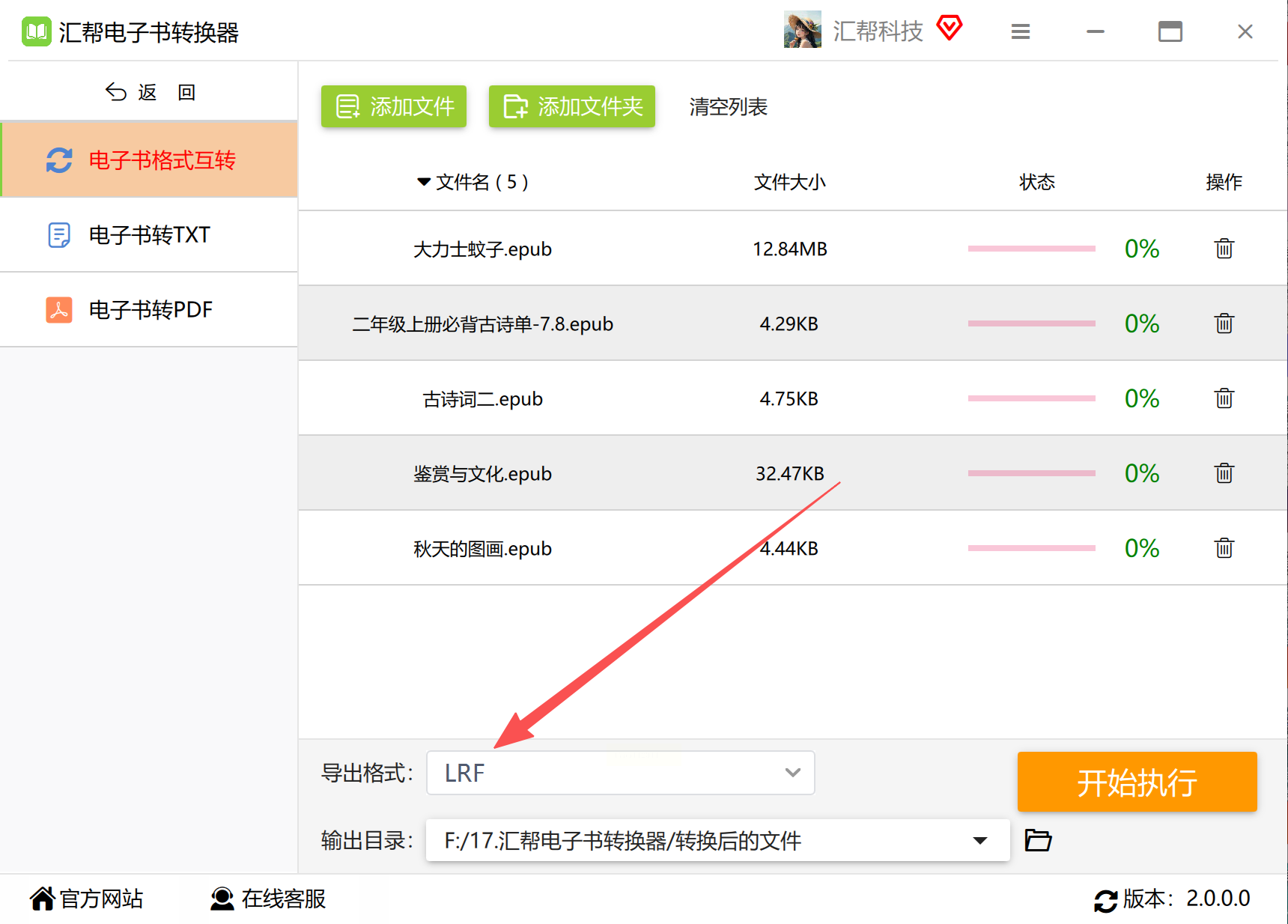 第三步,选择输出格式。在软件底部,找到格式选项,下拉菜单里选择LRF。这里要注意看清楚了,别选错。