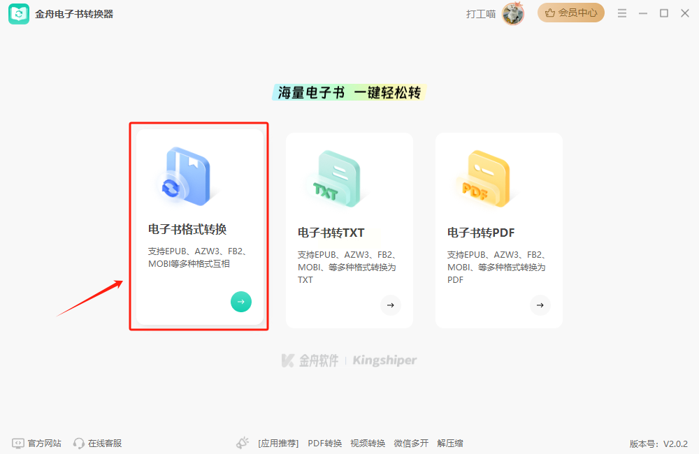 1. 启动界面:双击桌面上的软件图标,主界面直接显示"电子书格式转换"选项,适合零基础用户操作。