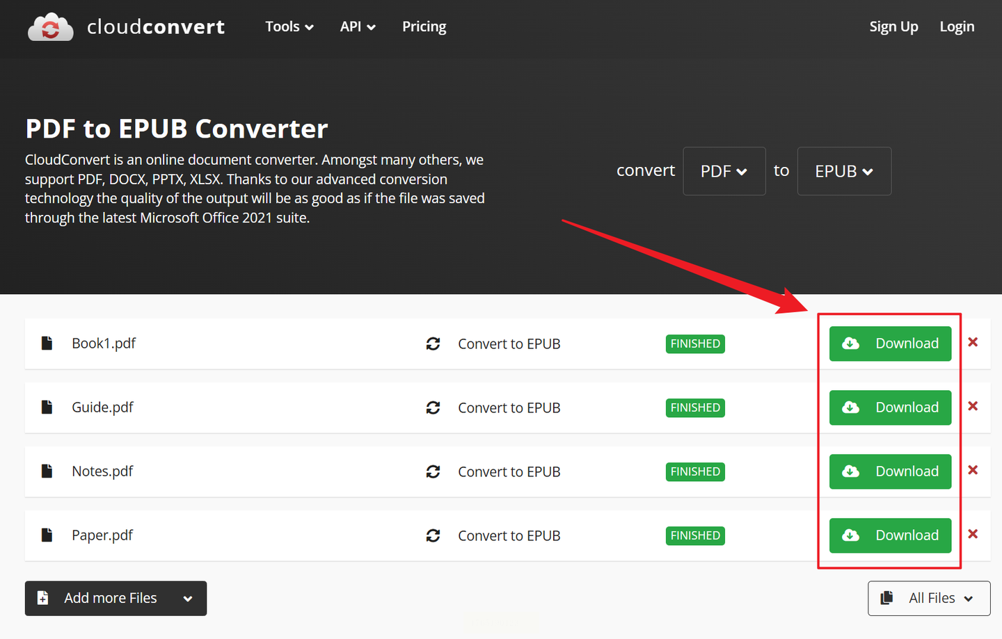 步骤五:转换完成后,页面会提供下载链接。点击它将EPUB文件保存到本地设备中,整个流程就结束了。