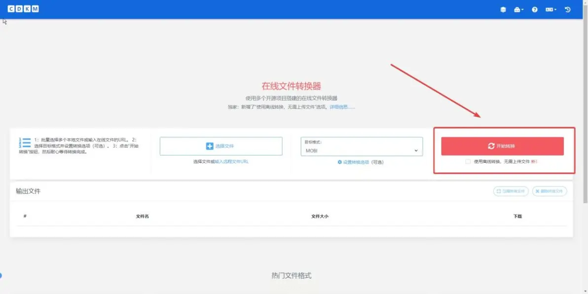 步骤一:访问CDKM网站,点击“选择文件”按钮上传EPUB文件。