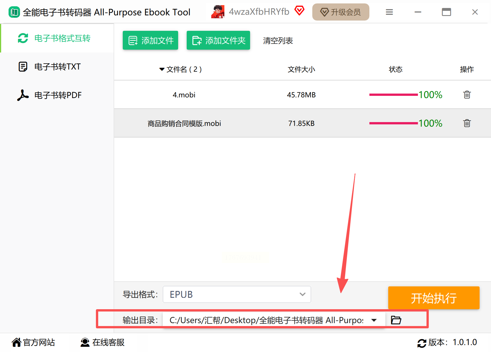 步骤二:选择格式并转换。在软件下方或设置区域,将输出格式设置为“EPUB”,随后点击“Convert”或“Start”按钮,转换过程通常非常迅速。