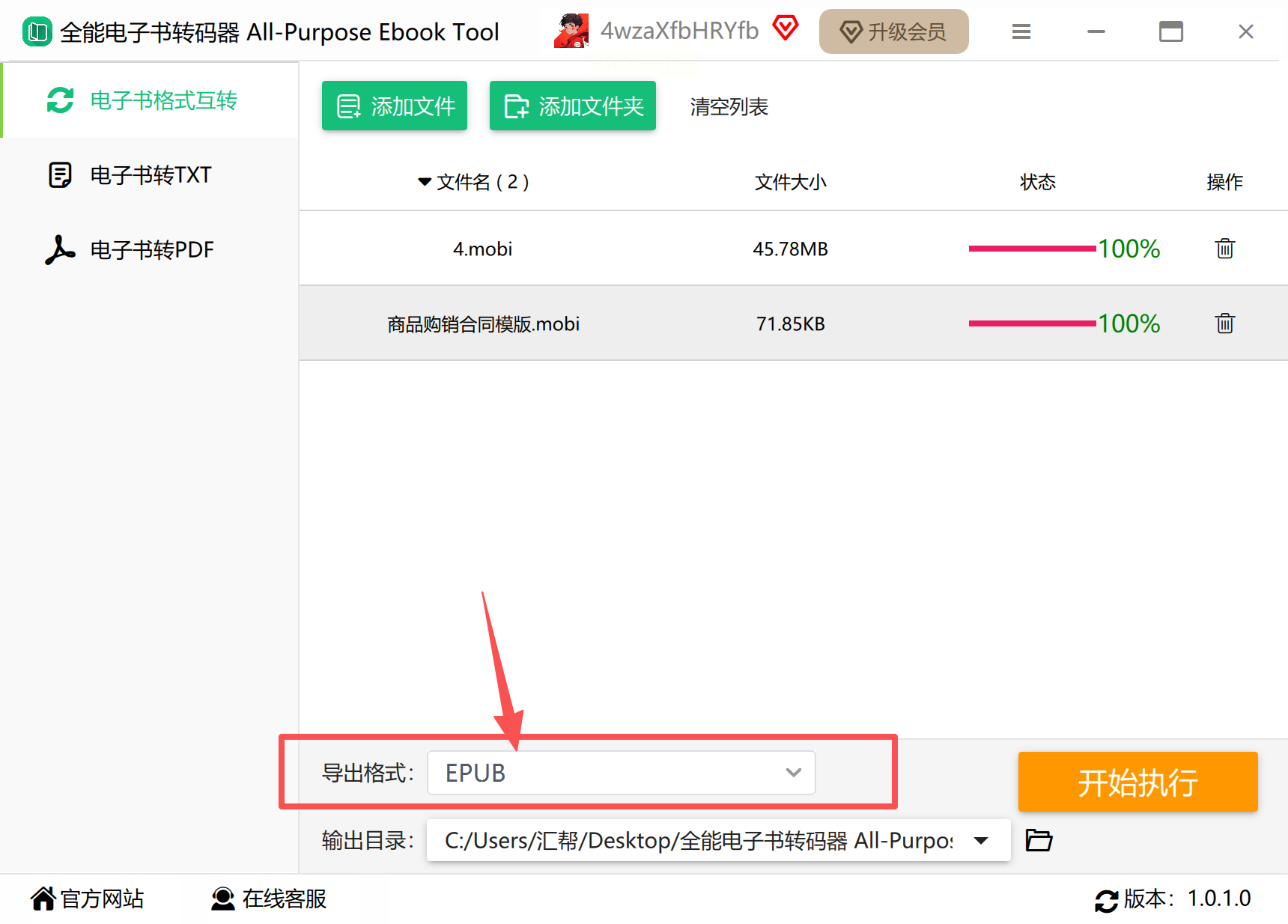 步骤三:设定输出格式。在输出设置或目标格式的下拉菜单中,明确选择“EPUB”作为转换后的格式。软件同时支持多种格式输出选项,展现了其强大的兼容性。