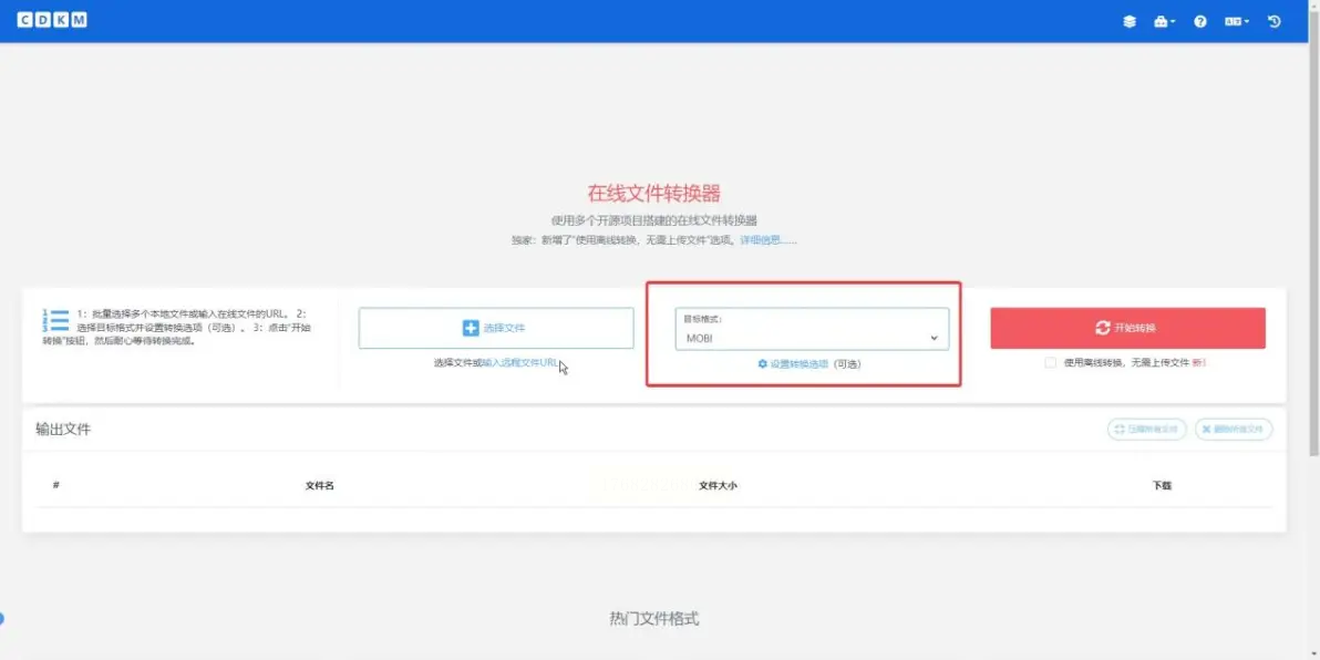 CDKM是一个免费的在线文件转换平台,支持多种文档和电子书格式转换。它的优点是不用安装软件,直接在网页上操作,适合临时使用。