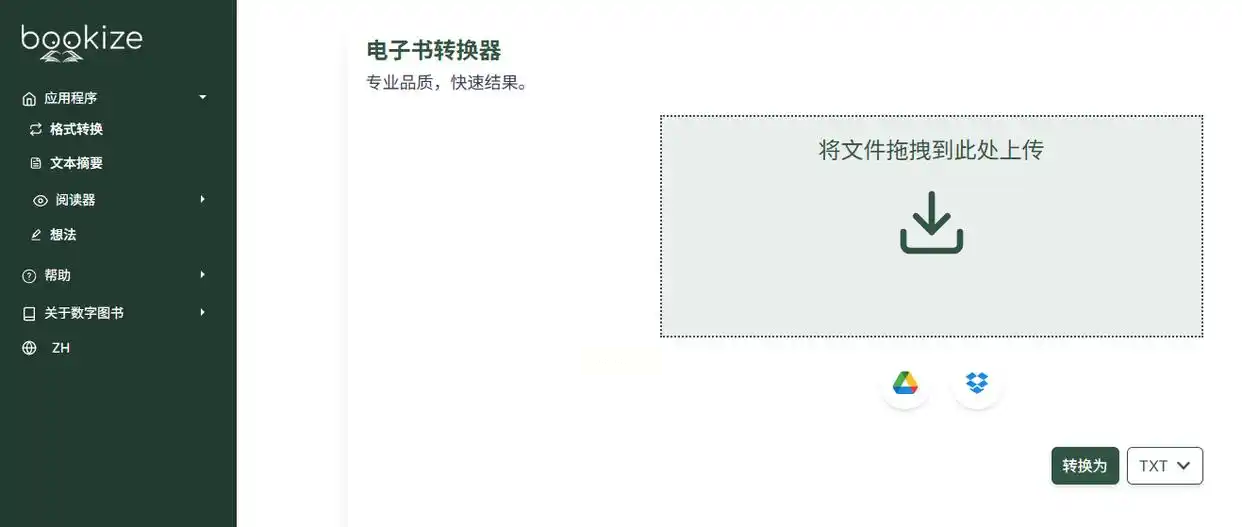打开它的网站,找到文件上传区域,点击上传你的EPUB文档。然后在转换目标格式中选择“TXT”,最后点击转换按钮。处理完成后,网站会提供下载链接。注意,这种方式需要网络,且文件需上传至第三方服务器。