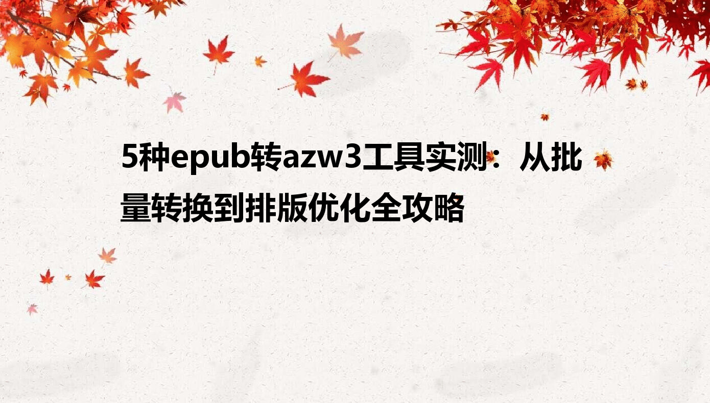 最近好多朋友问我epub怎么转azw3,毕竟亚马逊的Kindle现在用azw3格式越来越多,排版效果比epub还舒服。我自己也踩过不少坑,比如转出来的格式错乱、文件损坏,或者有些工具要收费。今天就把我试过的5个方法整理出来,都是不用安装软件的在线工具,还会告诉你每个工具适合什么场景,看完直接选最适合自己的就行。