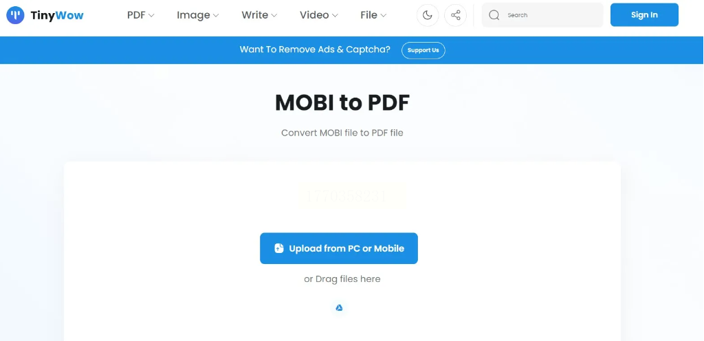 步骤一:打开TinyWow官网,在工具列表里找到「电子书转换」分类,选择“MOBI to PDF”。