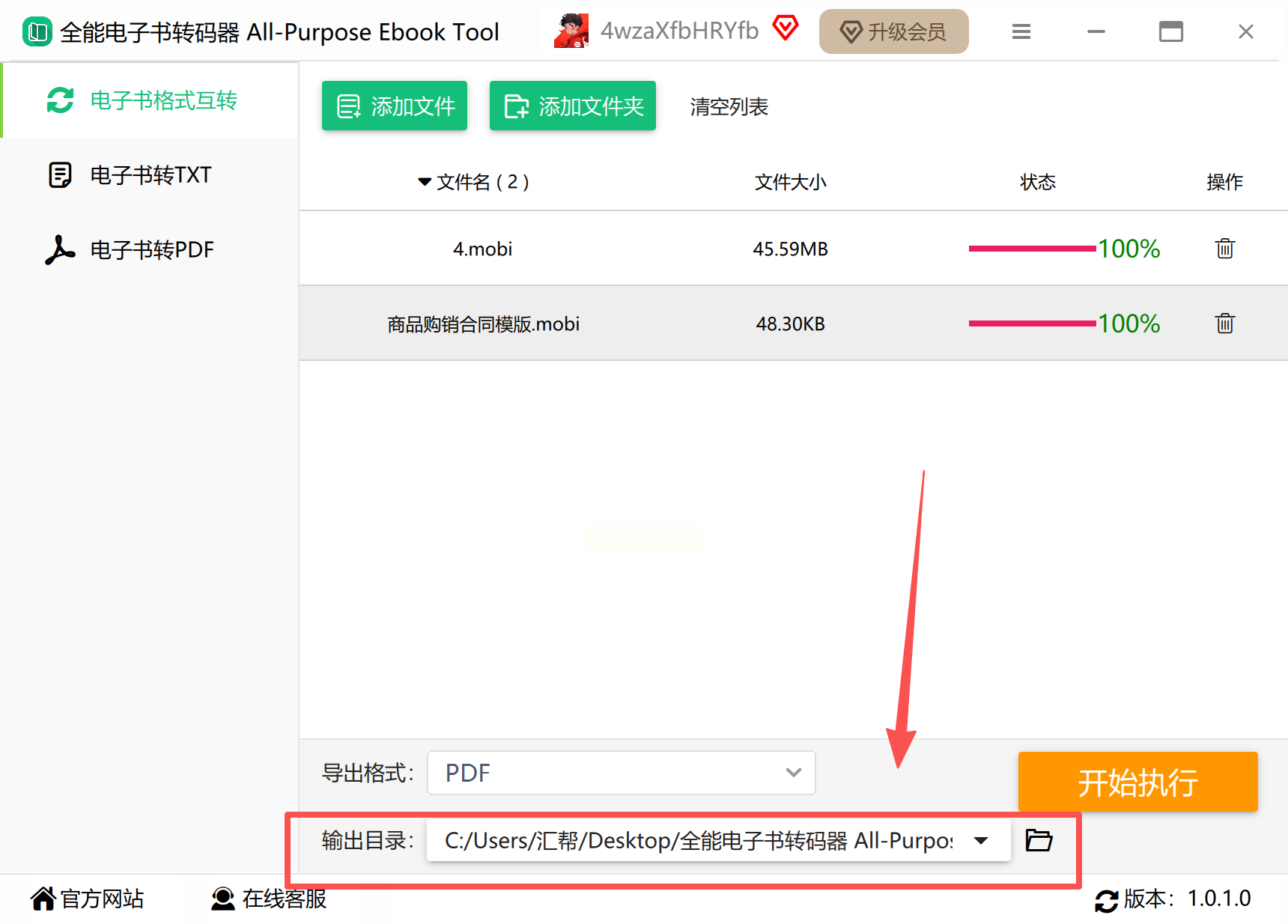 步骤二:上传后,软件会自动识别格式,确认是mobi后,点击「Convert」开始转换(注意:免费版会有水印,要是介意可以选择付费版本去除,不过临时用免费版也够用)。