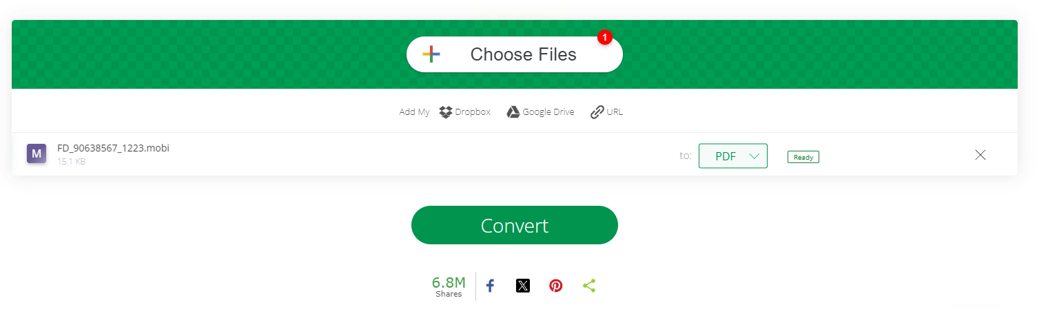 步骤一:在浏览器地址栏输入“OnlineConvert”,进入官网后,点击页面中间的「Choose Files」按钮,从本地选mobi文件(也能直接拖到网页框里)。