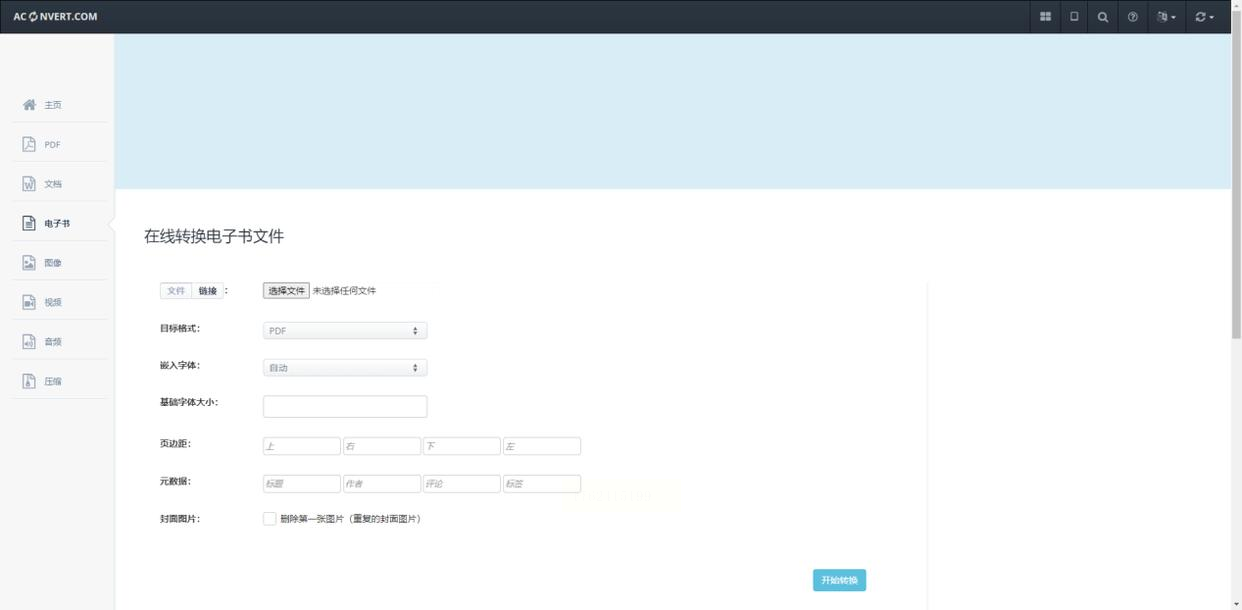 1. 进入ACONVERT官网,在「文档转换」分类中找到「电子书转换」功能。