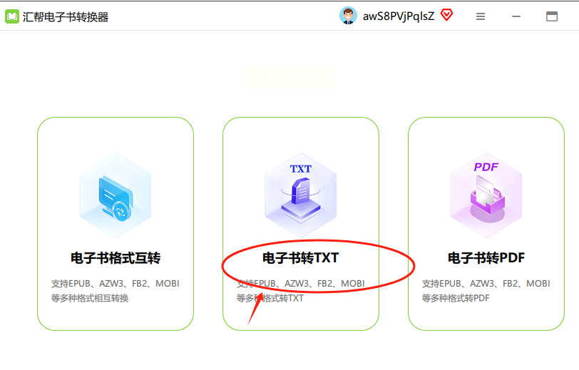 1. 打开软件。 在电脑上安装好之后,直接双击图标打开。主界面很清爽,一眼就能看到“电子书转TXT”这个功能按钮,点它进去。