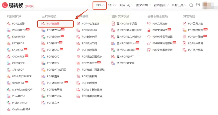 步骤一:在您的电脑或手机浏览器中,访问“易转换”的官方网站。进入首页后,您会看到按文件类型分类的众多转换选项。