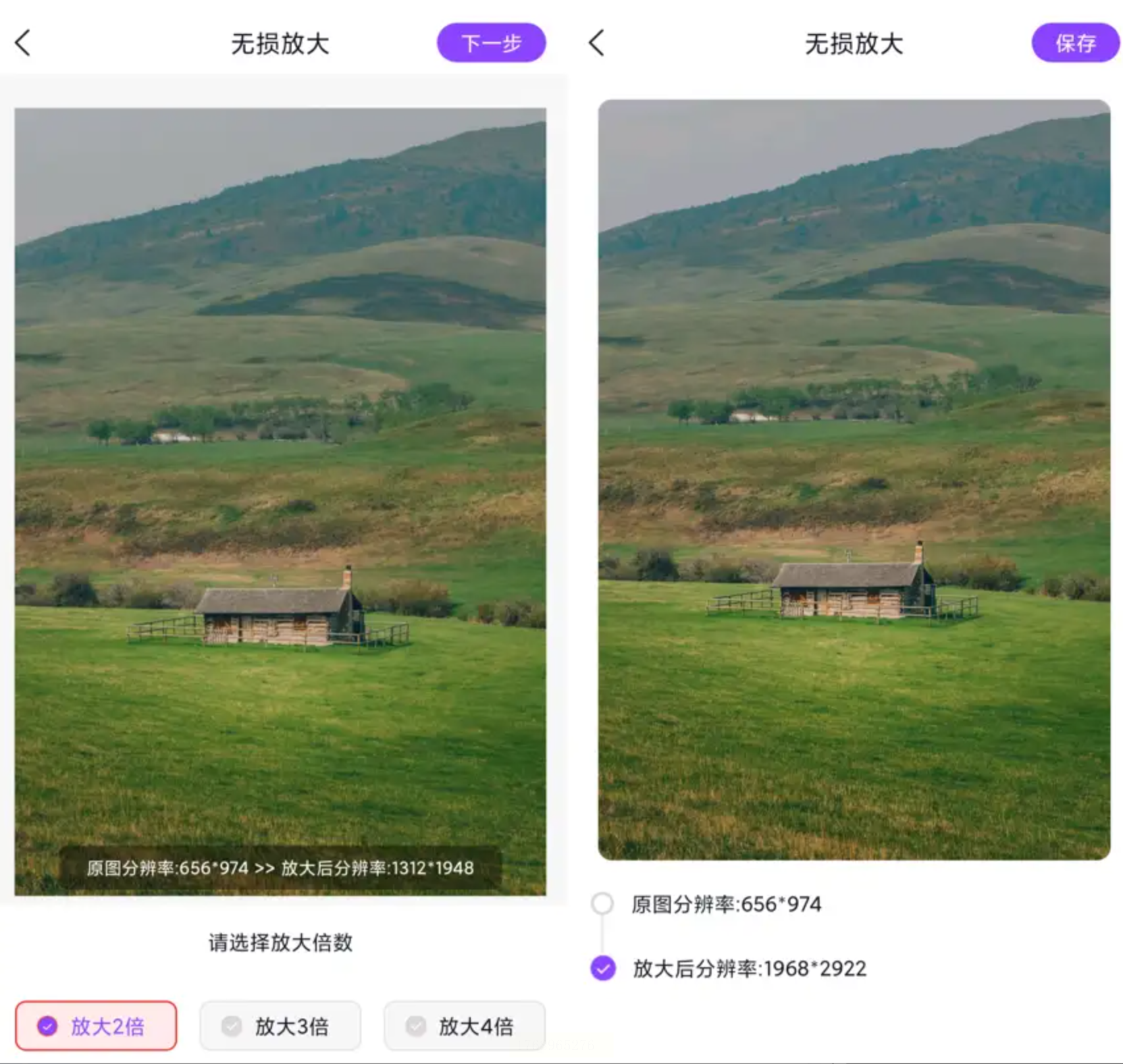 5. 预览与保存:软件处理完成后会自动生成预览图,可滑动对比放大效果。确认后点击“保存图片”,图片将自动下载到相册。
