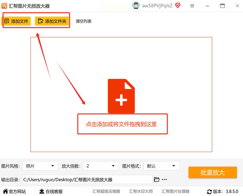 2. 导入图片:点击界面中间的「+添加图片」按钮,或者直接把图片拖进软件窗口,支持JPG、PNG等格式,一次最多拖20张。
