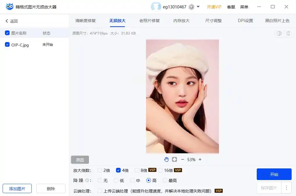 3. 点击"开始处理",等待约1分钟即可下载高清图