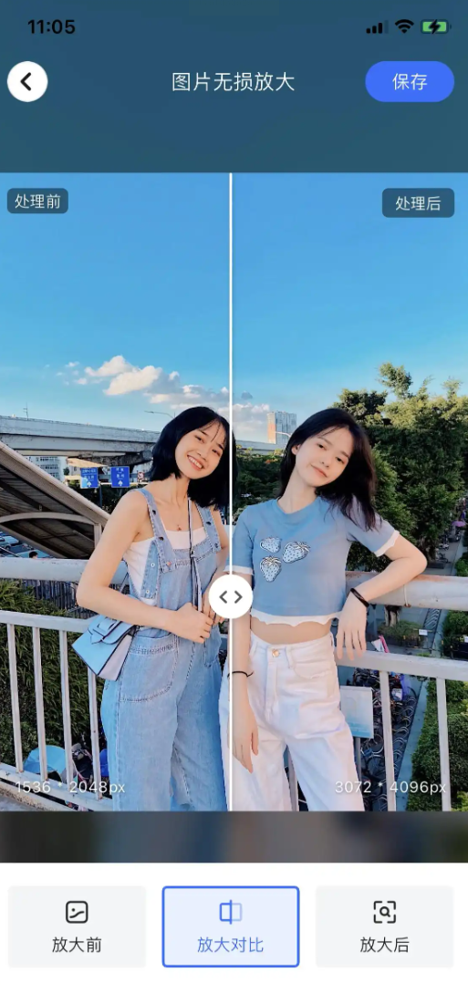 步骤三:上传后系统自动开始处理,完成后可预览放大效果,满意后保存结果。