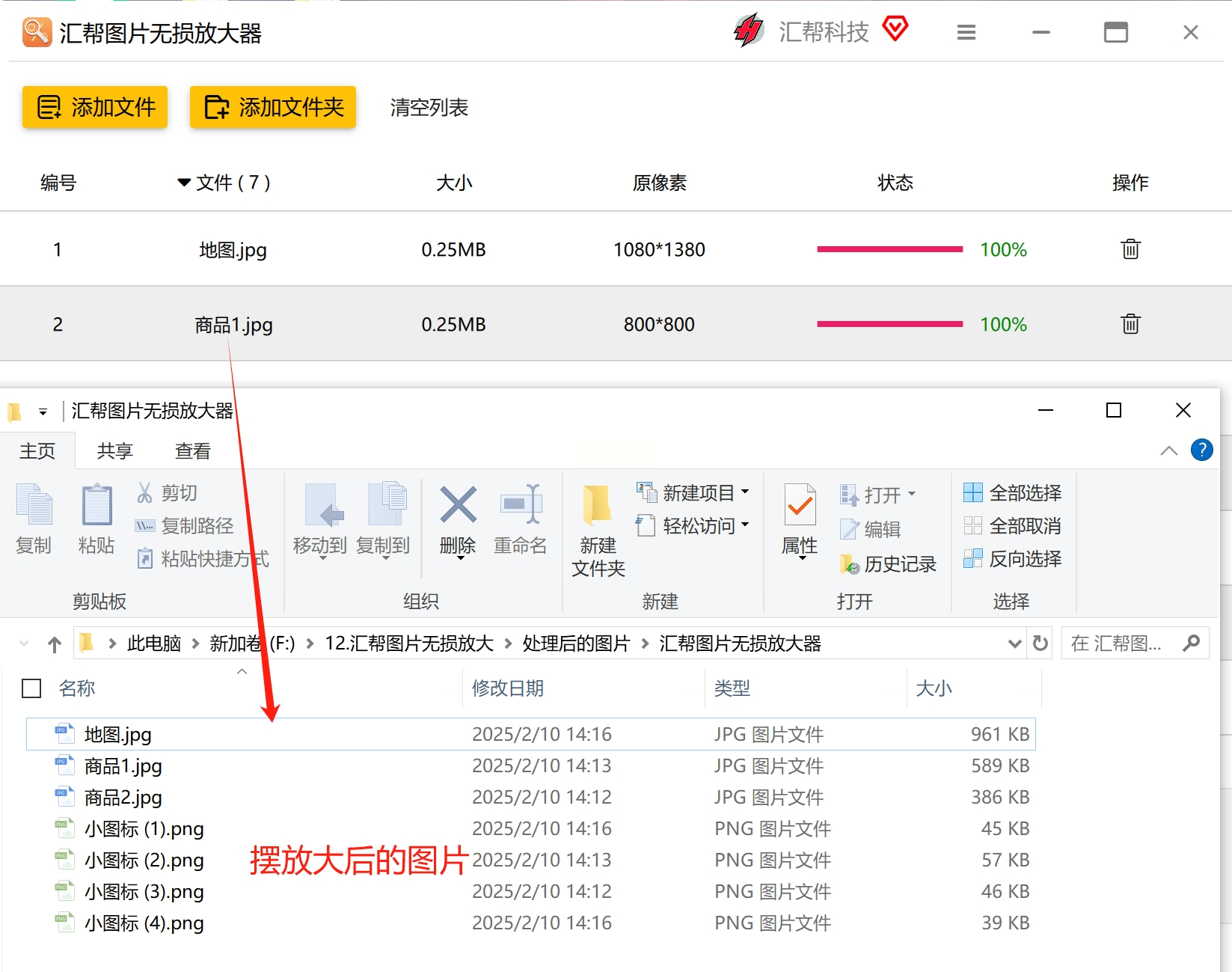 - 完成后打开输出目录,使用对比工具并排查看原图与放大图