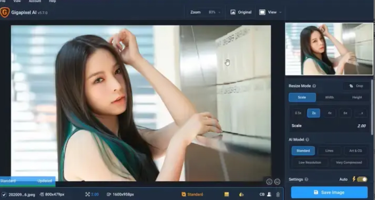 点击"Open"导入图片后,软件会自动检测图像类型(人物/风景/建筑等),右侧参数面板显示"Smart Enhance"推荐值。建议4x放大时启用"Preserve Details"滑块至70%,增强边缘锐化但避免过度处理。