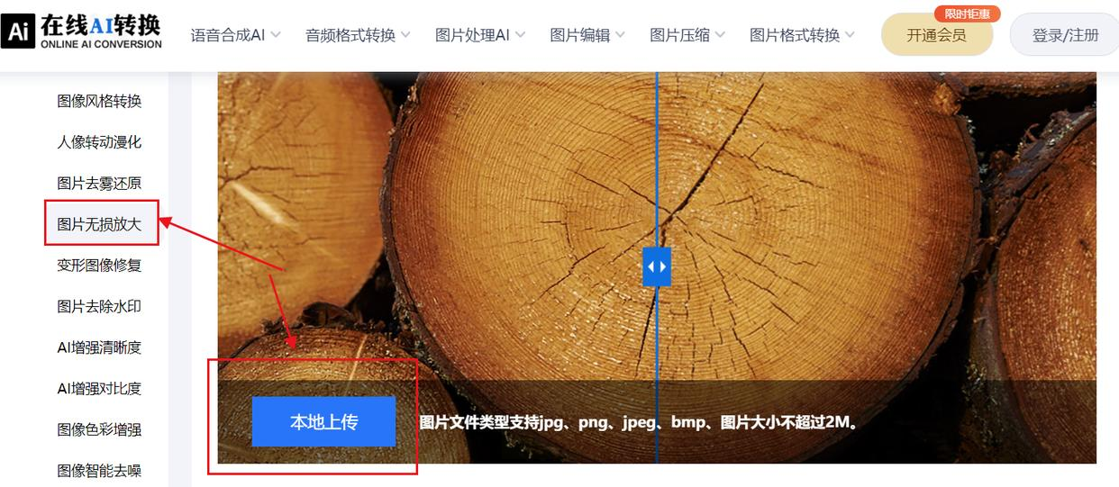 1. 打开平台,在“图像处理AI”菜单中选择“图片无损放大”。