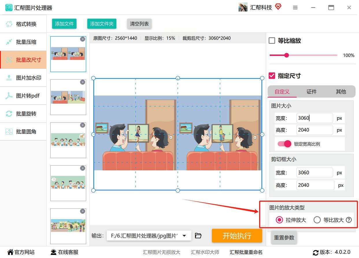 - 类型选“等比放大”(避免图片拉伸变形,尤其处理人像、风景照)