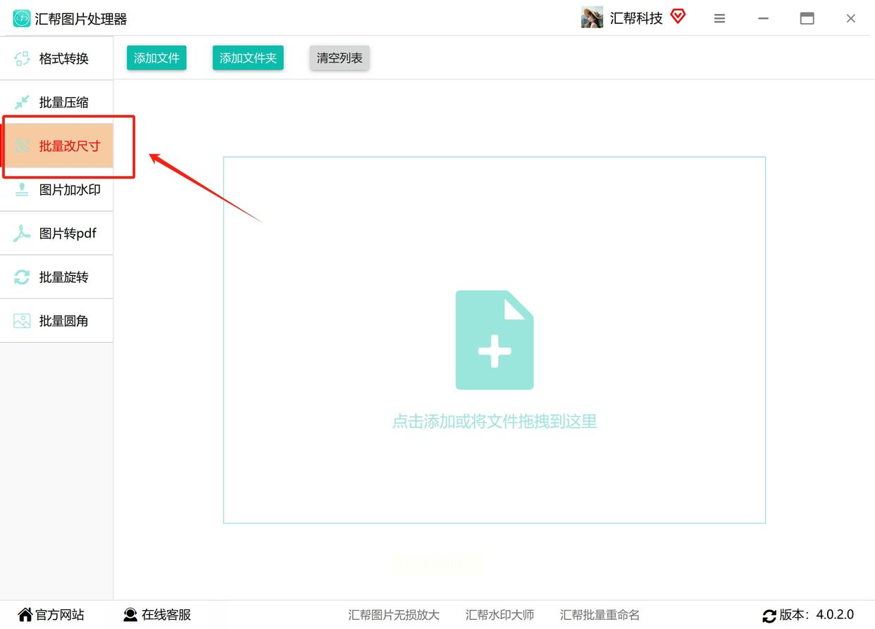 1. 打开软件:找到安装好的“汇帮图片处理器”,左侧菜单选“批量改尺寸”(界面很简洁,适合新手)