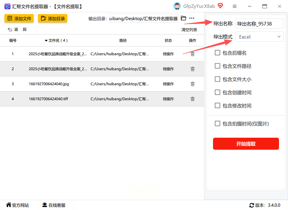 方案2:汇帮文件名提取器(快速批量导出党)
