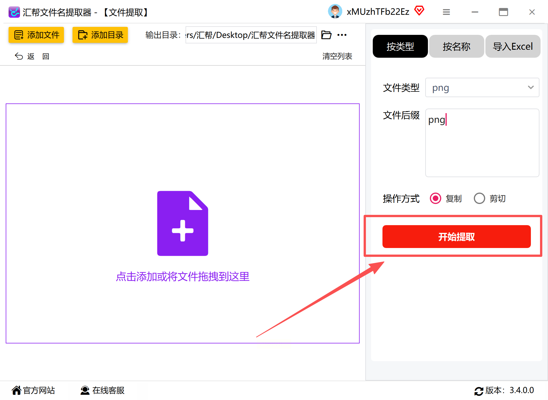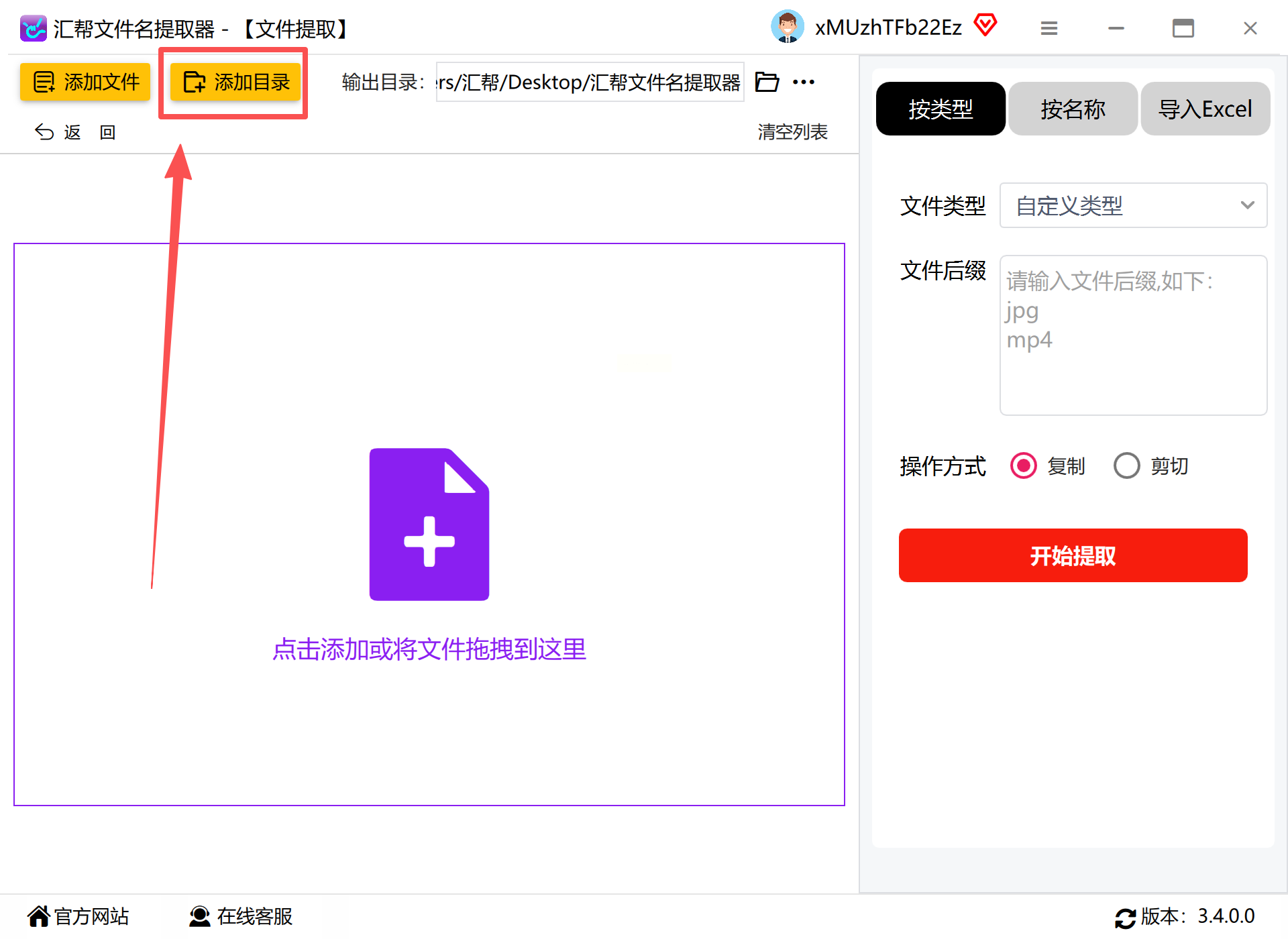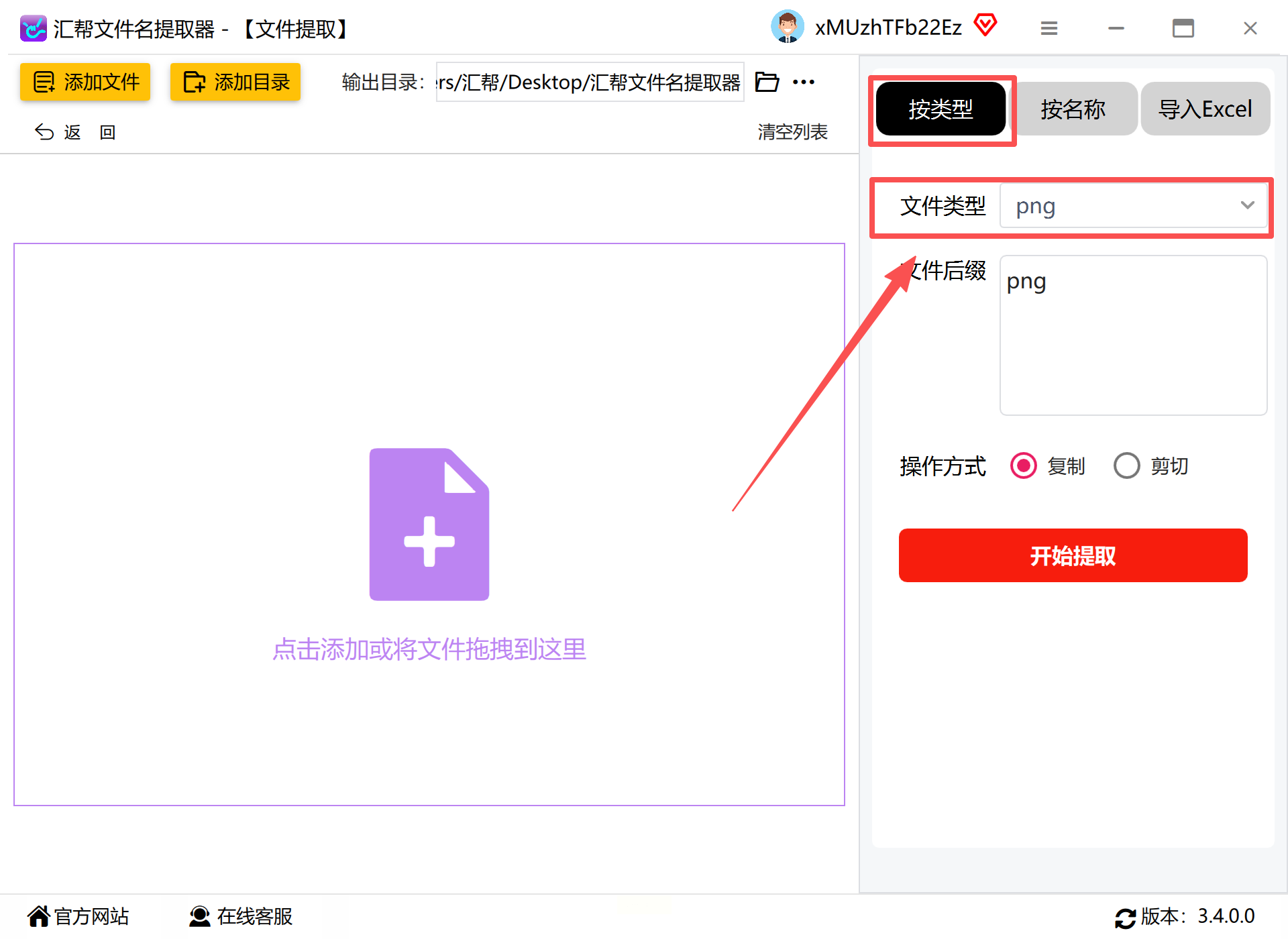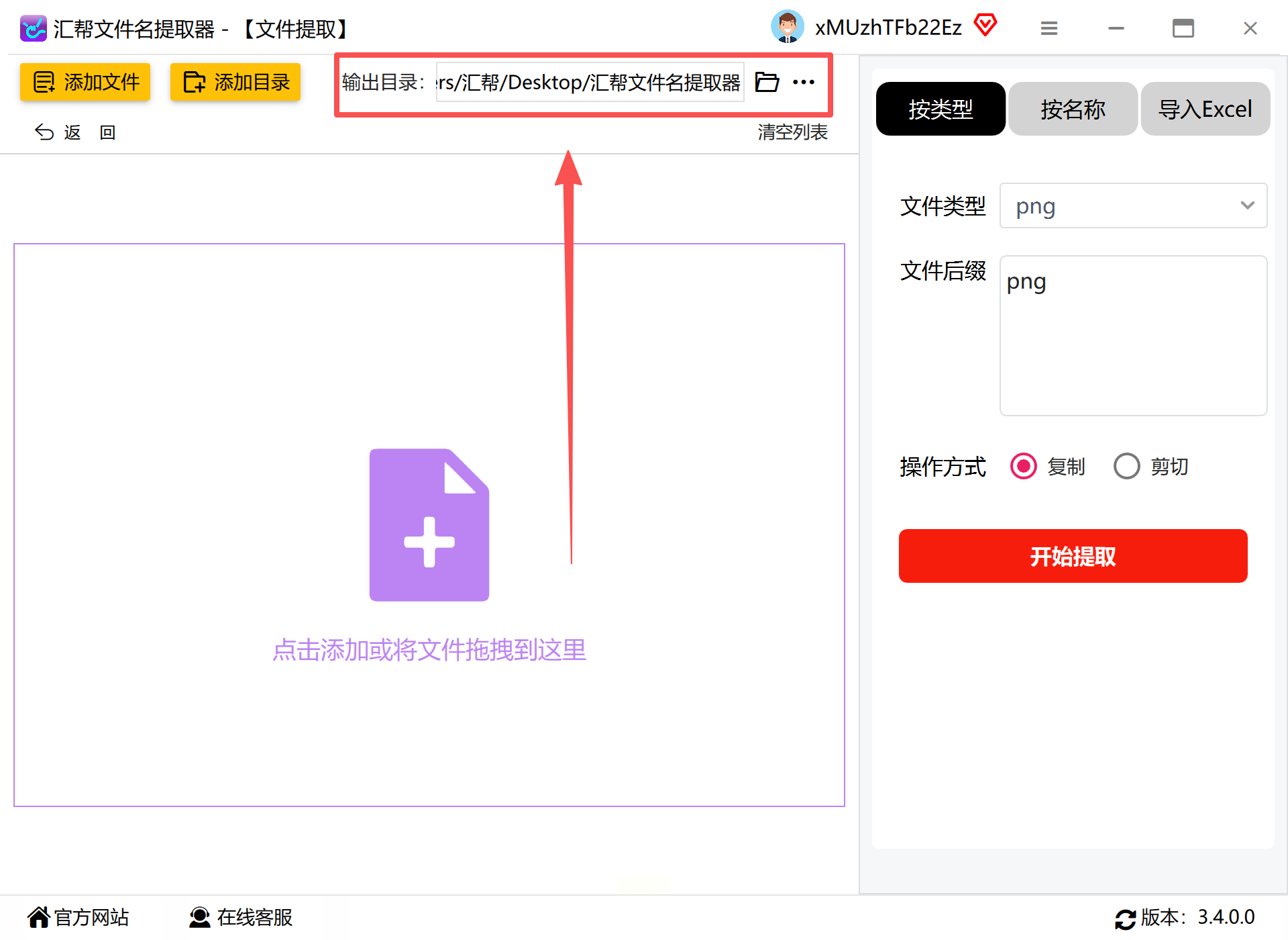 打开汇帮文件名提取器后,在主界面找到“文件提取”选项卡,点击进入提取模式。界面清晰展示了提取流程的各个环节,即使是新手也能快速上手。