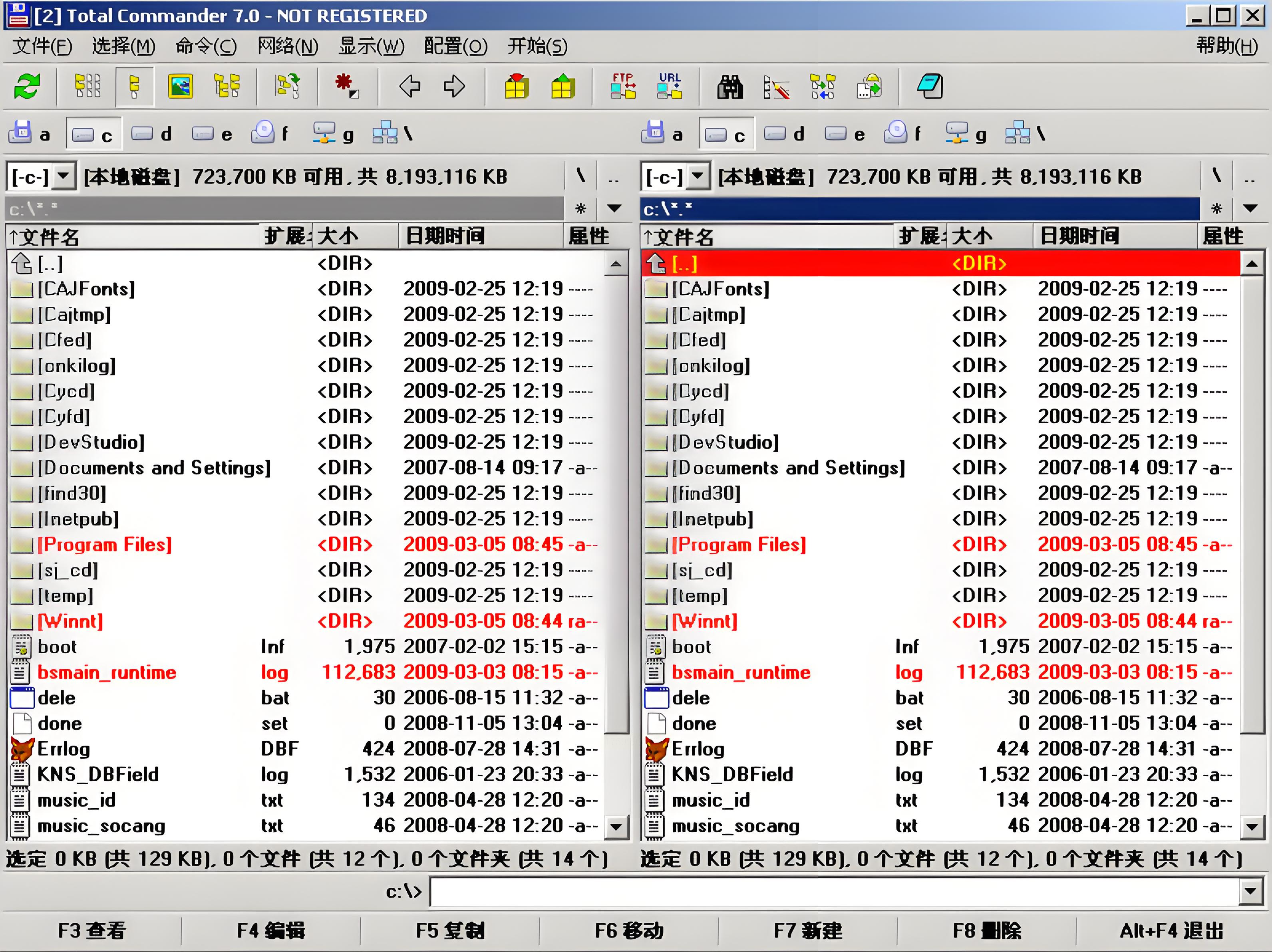 安装Total Commander后,软件默认分为左右两个面板。左侧定位到包含PNG文件的上级目录,右侧定位到目标文件夹。