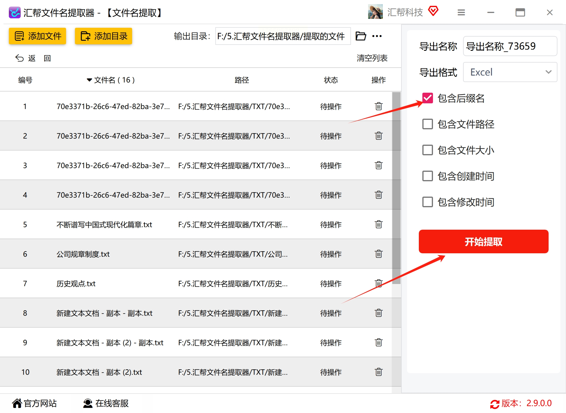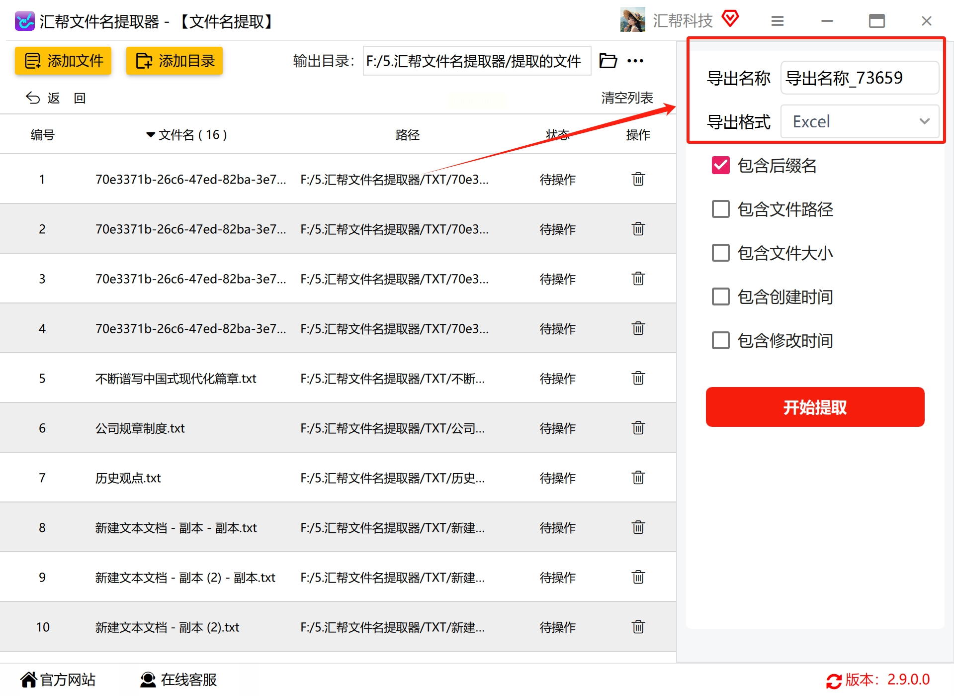 4. 勾选“包含扩展名”:这步很关键!比如你要提取“报告.pdf”还是只要“报告”,勾选后就能保留后缀名(像.jpg、.mp4这些都能区分)。